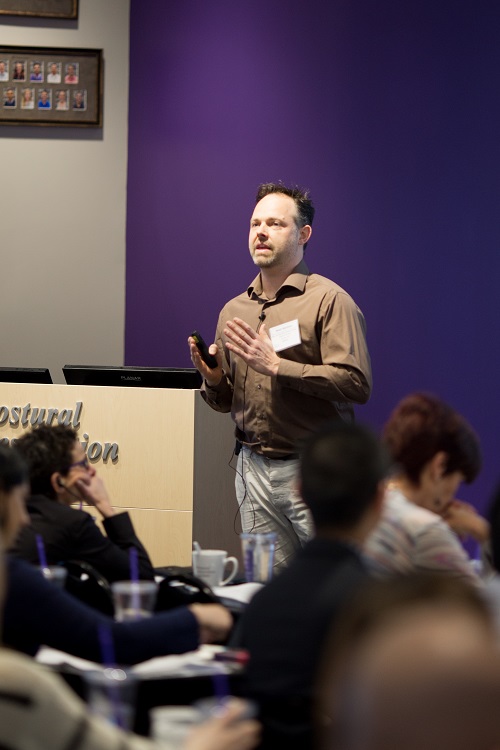 It has been a couple weeks now since we wrapped up our 10th Annual Interdisciplinary Integration Symposium, but we are all still boasting with excitement over the two days that we had on April 19-20th! It was such a pleasure to host Matt Wallden and Phillip Beach, Osteopaths from across the pond who were our keynote speakers this year. Their clinical and educational backgrounds allowed them to expand on topics of tissue restriction, evolutionary and development factors, archetypal postures, and contractile fields relating to the symposium’s overall topic of “Postural Restriction”. Jacqueline Shakar blended her extensive clinical experience in assessment and treatment of the foot and ankle, with different methodologies, including PRI, Graston Technique, SFMA, and others, giving us all further appreciation of the role that the foot and ankle plays in restriction from the floor up and other areas of the body. Robert “Skip” George shared his personal journey as a chiropractor, the restrictions encountered within his profession and also some of the common clinical restrictions that occur in the cervical spine. Heidi Wise opened our eyes further to the role that extraocular muscles have on (or in response to) postural patterns, and possible restrictions that might occur with the EOMs. Pat Davidson took us through a fun journey reminding us how we have lost “authentic environments” that our ancestors thrived upon, and how this is influencing today’s healthcare and fitness industries. Ron Hruska got to further expand on chest wall restriction and the role of clavicle, hyoid and scapula position and alignment. His discussion on management of hyoid muscle ‘sling’ activity was brought to life with the ‘PRI Suprahyoid Sling Model’ that attendees received to help them further understand, and also educate their colleagues, patients or clients how mandibular and hyoid position/alignment influences suprahyoid muscle activity. And finally, it was an honor to have Gabe Adams speak, dance, and answer questions for our attendees on Thursday evening. His story (along with his father Ron) was more than inspiring, and reminded all of us that the thorax runs the show. With ribcage and thorax movement, you can walk, dance, and live life to its fullest!