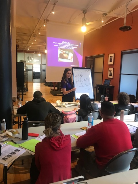 From Kasey: "The class brought the energy from the city into the two full packed days of learning Myokinematic Restoration. With 80% of the class being their first PRI course ever, the questions and ability to learn and regurgitate the material was very impressive. We even had a DO that lives in Belgium fly over to learn the science of PRI. The combination of strength and conditioning specialists, PTs, and even PT students in the course is what keeps PRI applicable and beneficial to all different disciplines. They mastered exercises in lab to reposition the pelvis as well as strengthen the pelvis in the new neutral state. The attendees began to understand the correlation between the infamous Hruska ADDuction and ABDuction lift scores in regards to the gait cycle. Being able to tag team teaching with Jen Poulin was an absolute honor and appropriate considering she was the first faculty member to present Myokinematic Restoration to me several years back. A thanks to Brad Gillen, for assisting in lab, we couldn’t have done it without your help and expertise to hit home for such a large group of attendees."