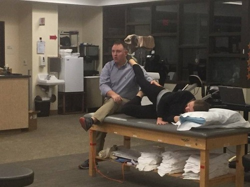 We were fortunate to have plenty of lab and demonstration time. My thanks to Dade Donovan, DC, for being our model for our repositioning demonstration. He has a classic L AIC presentation, and was the optimal model for our learning. , Additionally, Cole Hughlett, DPT, provided us the opportunity to learn how his testing revealed differing results when compared to Dade. We also had a great introduction to the Hruska Adduction and Abduction Lift tests, as well as how they are linked to the gait cycle. Which lead us into our discussion of how the hamstring is the gate keeper of the gait cycle. Susie Buchanan was a great model for us to learn and see how underlying every PEC is a L AIC.