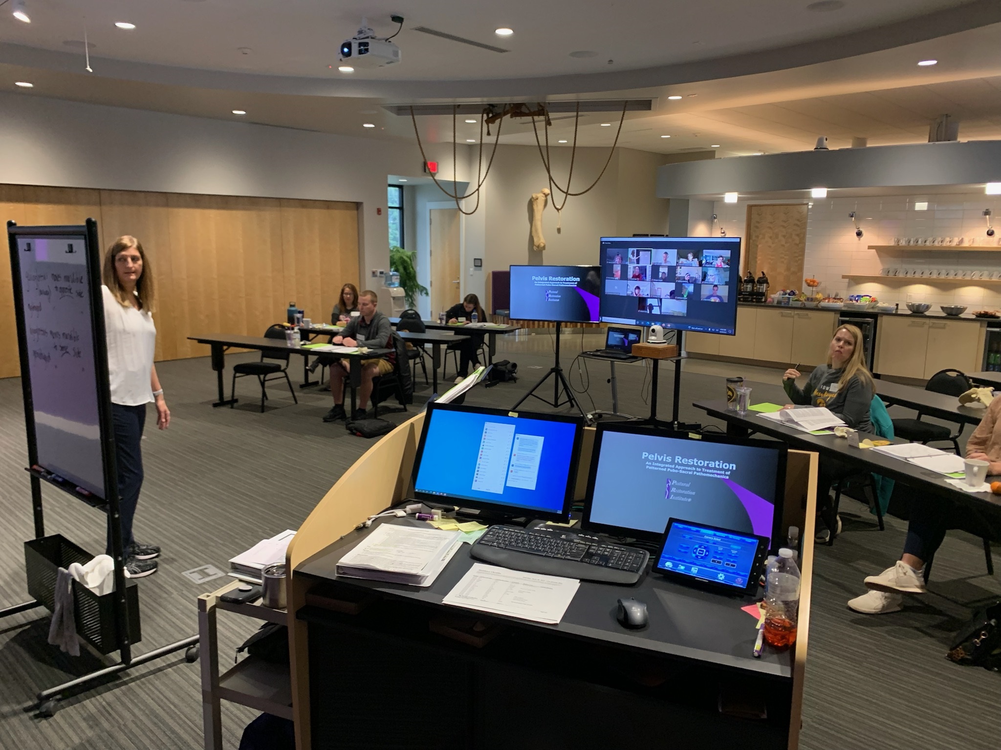 I recently had another great oppurtonity to teach Pelvis Restoration at the home of the Postural Restoration Institute. This was the third Live Stream course that I have instructed and it was truly one of the best! I had a smaller live group of 6 on site attendees and over 20 Live Zoom participatents. I did my best to stay focused on the introductory concepts, tests and treatments for pateints suffering from Pelvis related dysfunctions. I enjoyed the discussions regarding patterns, positions and PRI as it relates to frontal plane control of the Pelvis. I really enjoy discussing Pelvis Respiration as it can benefit so many patients and give PRI therapists a greater understanding of how the thorax, inlet and outlets all integrate to stabilize our pateints. Thanks to RJ for being my Mystro this weekend. He always takes good care of me and our students.