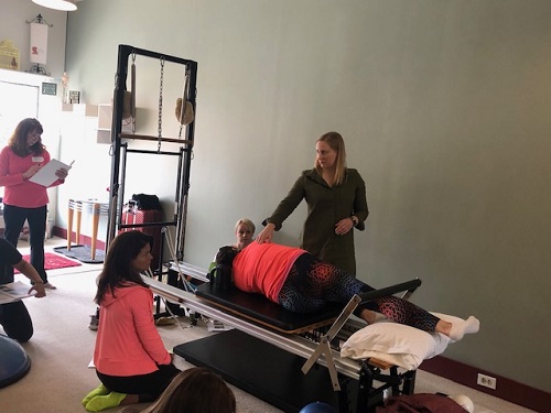James did a stellar job explaining appropriate diaphragmatic breathing and the the roles of the IO’s, EO’s TA’s and serratus to this group whose primary focus is the “core”. Sarah had everyone learning to drive in the left and make legal right turns. Donna led the lab integrating Pilates and PRI techniques on the Pilates reformer. We were honored to have Jen Poulin join us to learn how to begin to use Pilates equipment to further enhance her pelvic restoration expertise. Shout out to our host Kelly Ruesing who jumped through many hoops to be present even though she had a music gig in Indiana the same weekend. Special thanks to Nancy Hammond PRC for igniting the interest and bring PRI Pilates to St. Louis.
