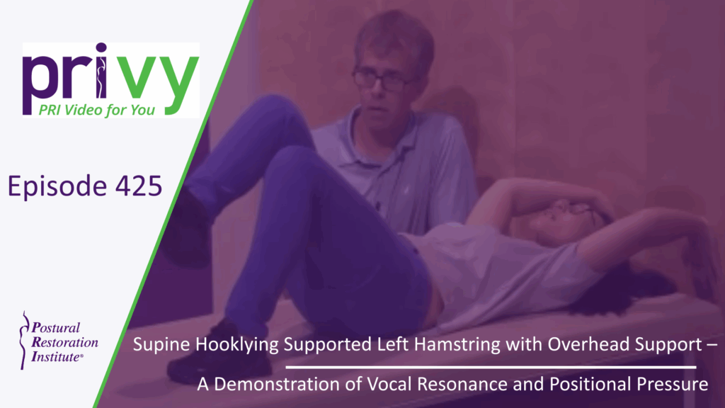 Ep 425 – Supine Hooklying Supported Left Hamstring with Overhead Support – A Demonstration of Vocal Resonance and Positional Pressure